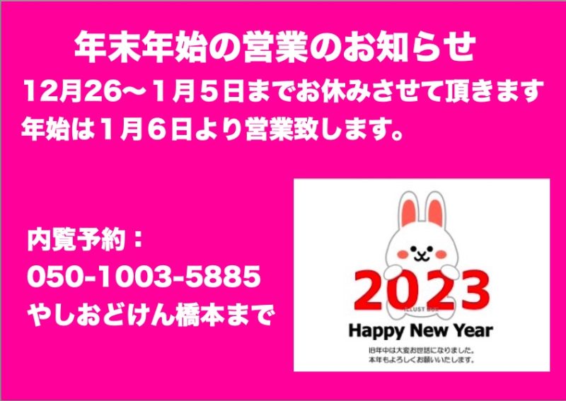 年末年始営業のお知らせ