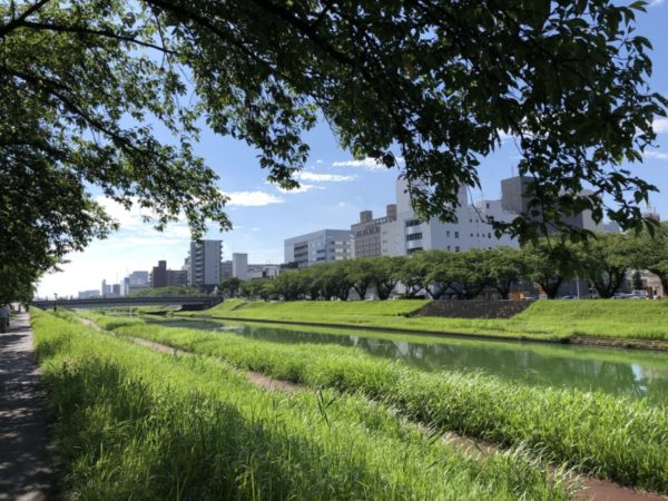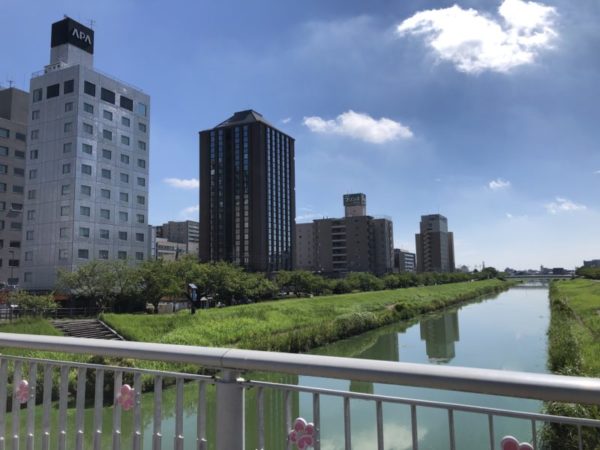 マンションの前を流れる桜川、