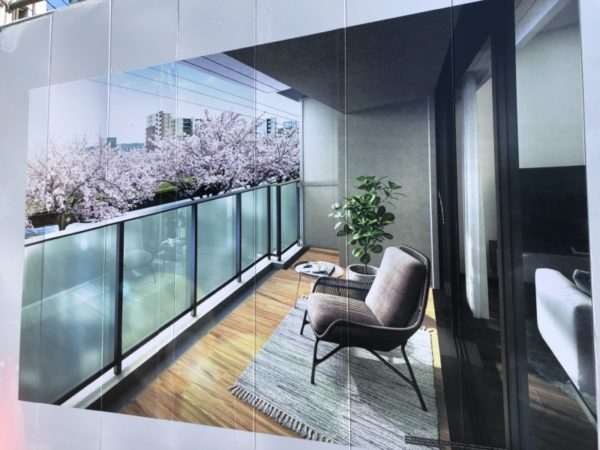 バルコニーから眺める桜川の桜