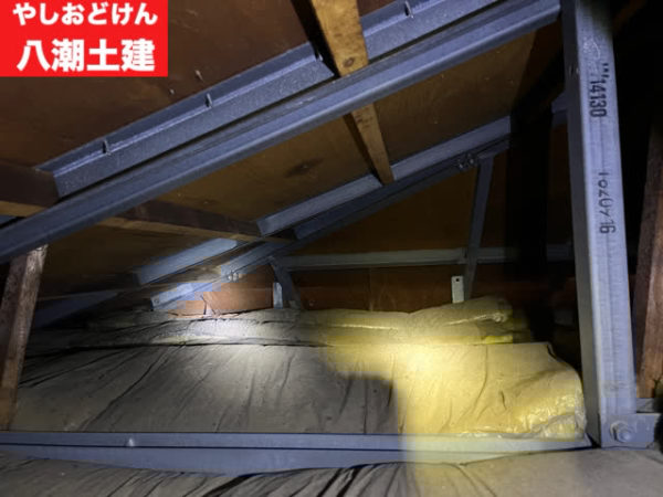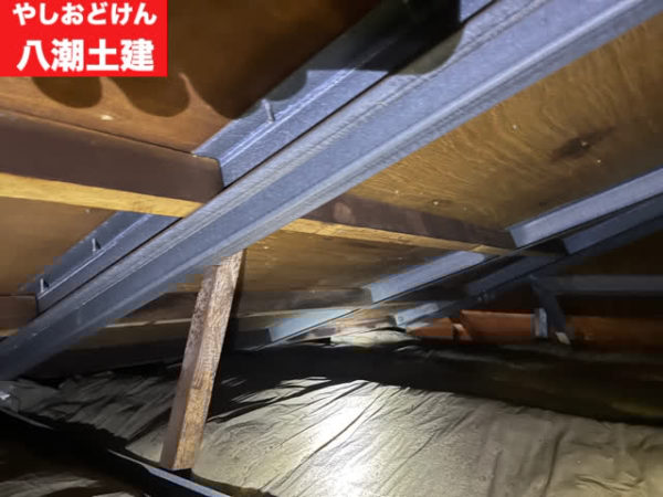 軒裏(二階の天井裏)は、断熱材が敷き詰められており、感想していて、湿気やカビ臭さは無かったので安心しました。